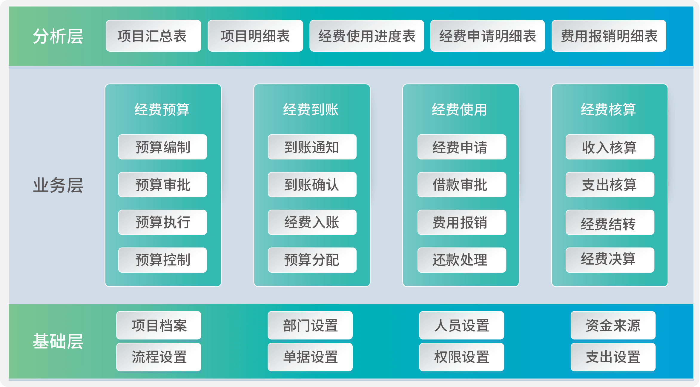 科研经费管理系统以项目为中心、以项目经费预算为起点、以项目资金使用为主线、以项目经费核算为重点、以项目决算分析为末点,实现项目经费的规范化、过程化、科学化管理。