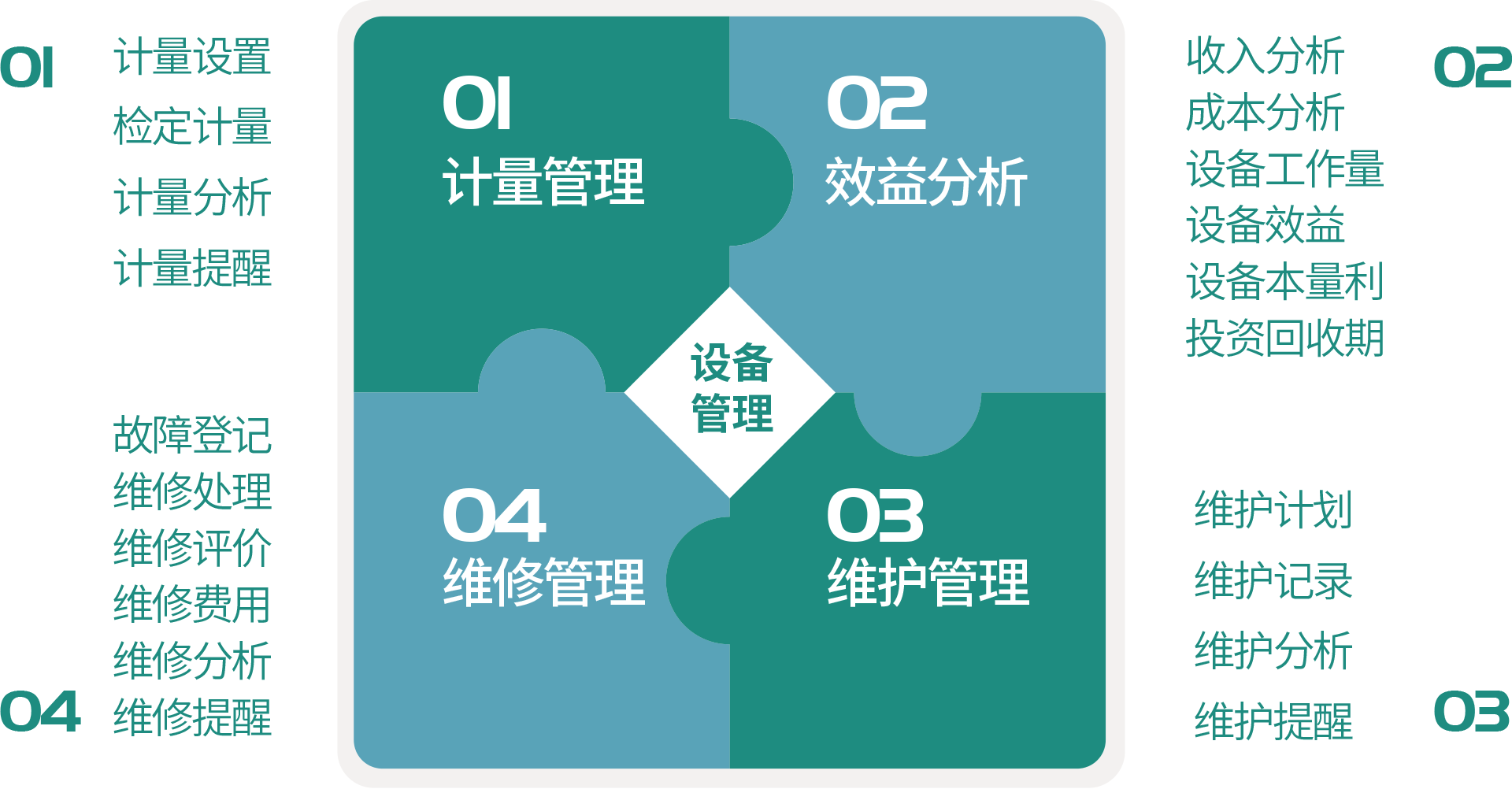 设备管理以单台设备为核心,从设备使用的角度出发,引入电子地图、二维条码、RFID、移动终端的方式,进行设备故障登记,设备保养提醒,通过自动化的手段,归集设备的折旧费、电费、维修费、人工费、材料费等运行成本数据,进行设备效益核算,提高设备的开机率,提高设备利用效率、合理采购配置资产,确保设备保值增值,提高医院的可持续发展能力。