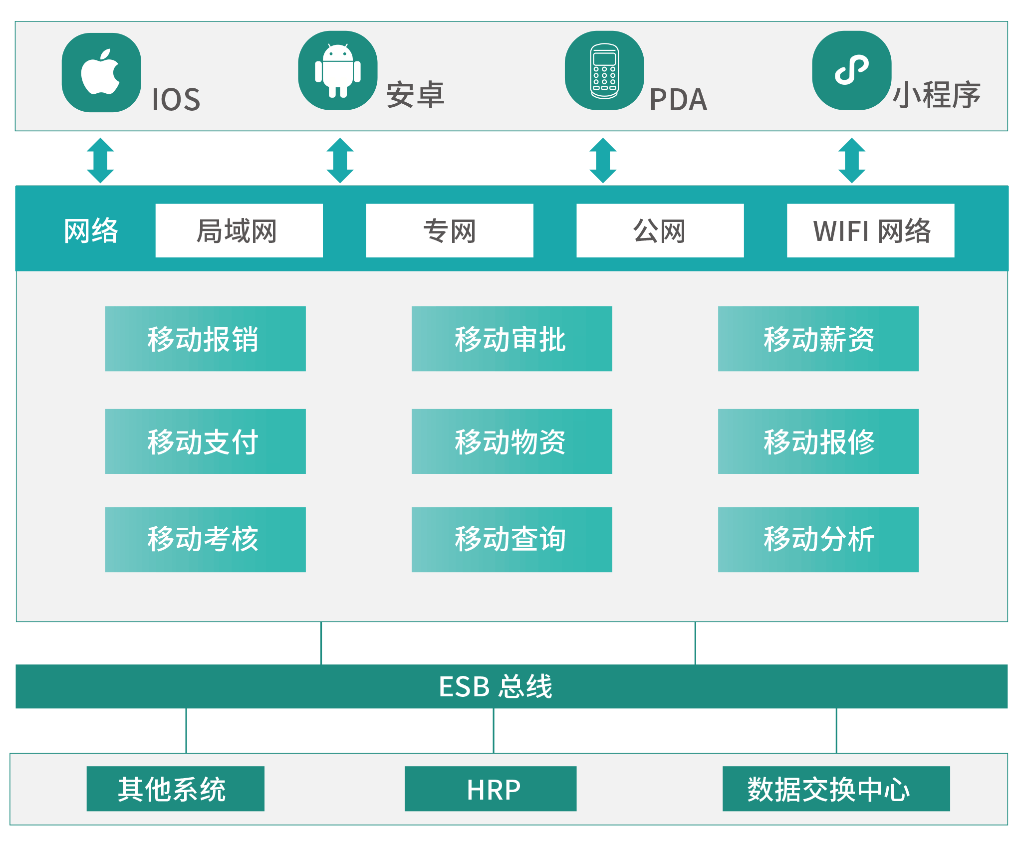 移动HRP可通过移动APP、微信小程序等方式结合互联网的广泛应用,通过与医院HRP系统的互联互通,帮助手机端客户实现移动在线办公、移动运营管理、移动供应查询、移动决策支撑为一体的综合移动办公应用。