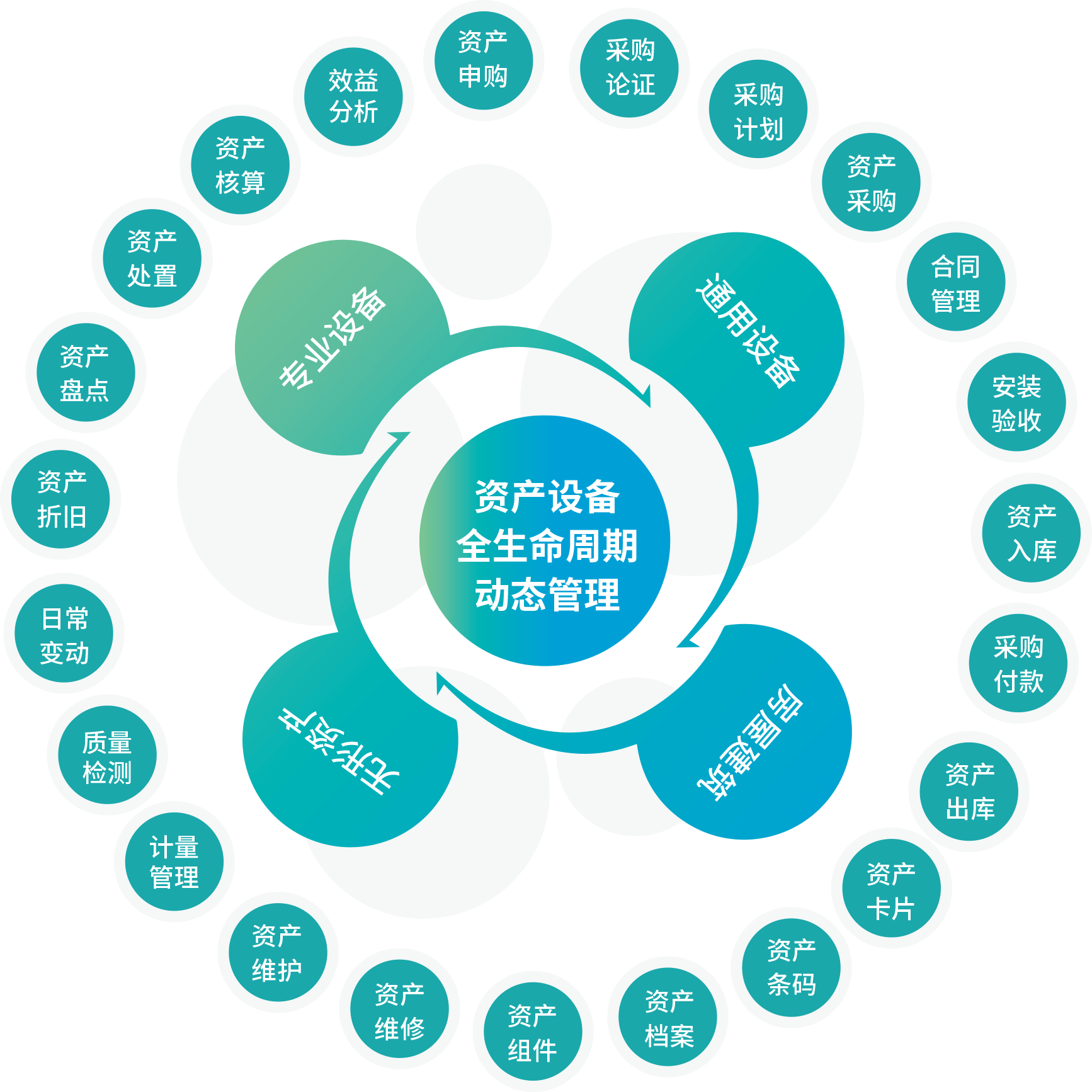 从购置前的预算管理、可行性论证,到使用过程中的技术档案、组件备件、维修维护、价值折旧等,再到使用后的资产盘点、清理、报废的全生命周期的动态管理。确保资产管理分级控制、责任到人,最终,通过资产的良好管理与经营,支撑医疗业务的正常开展,促进医院再生产能力的逐步提升。