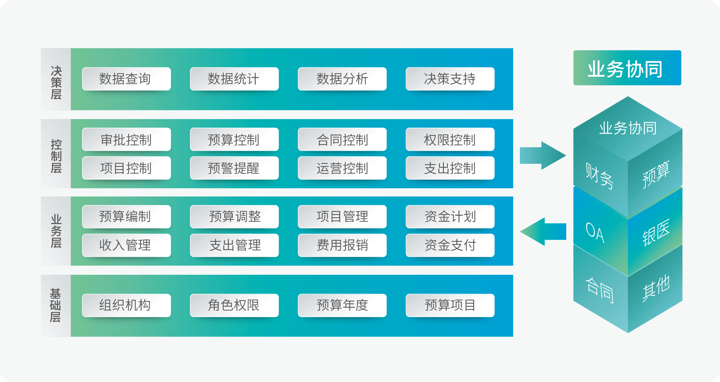 方案以实现智慧财务管理为主线,通过智能化预测实现预算编制,通过实时化预警落地内部控制,通过RPA(机器人流程自动化)实现财务成本核算,通过大数据分析实现智能决策,达成智慧财务闭环管理。